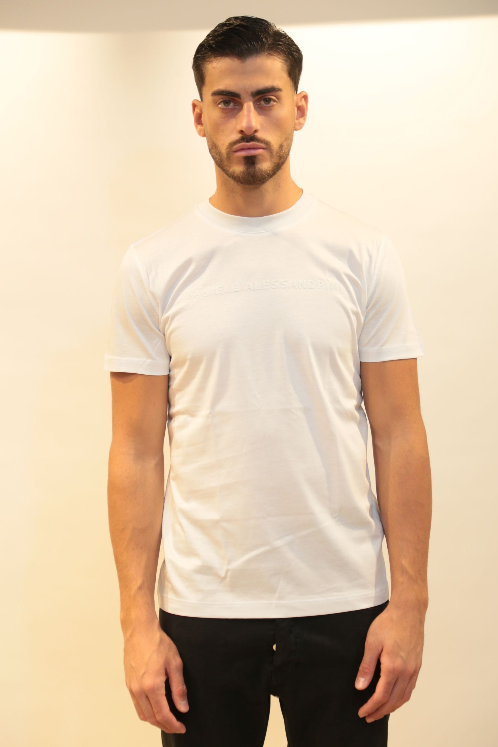 La t-shirt DANIELE ALESSANDRINI è il capo essenziale per l'uomo contemporaneo che cerca eleganza casual e qualità italiana. Questo design raffinato disponibile in bianco e nero incarna lo stile sofisticato del brand DANIELE ALESSANDRINI, perfetto per creare look casual-chic in ogni occasione.