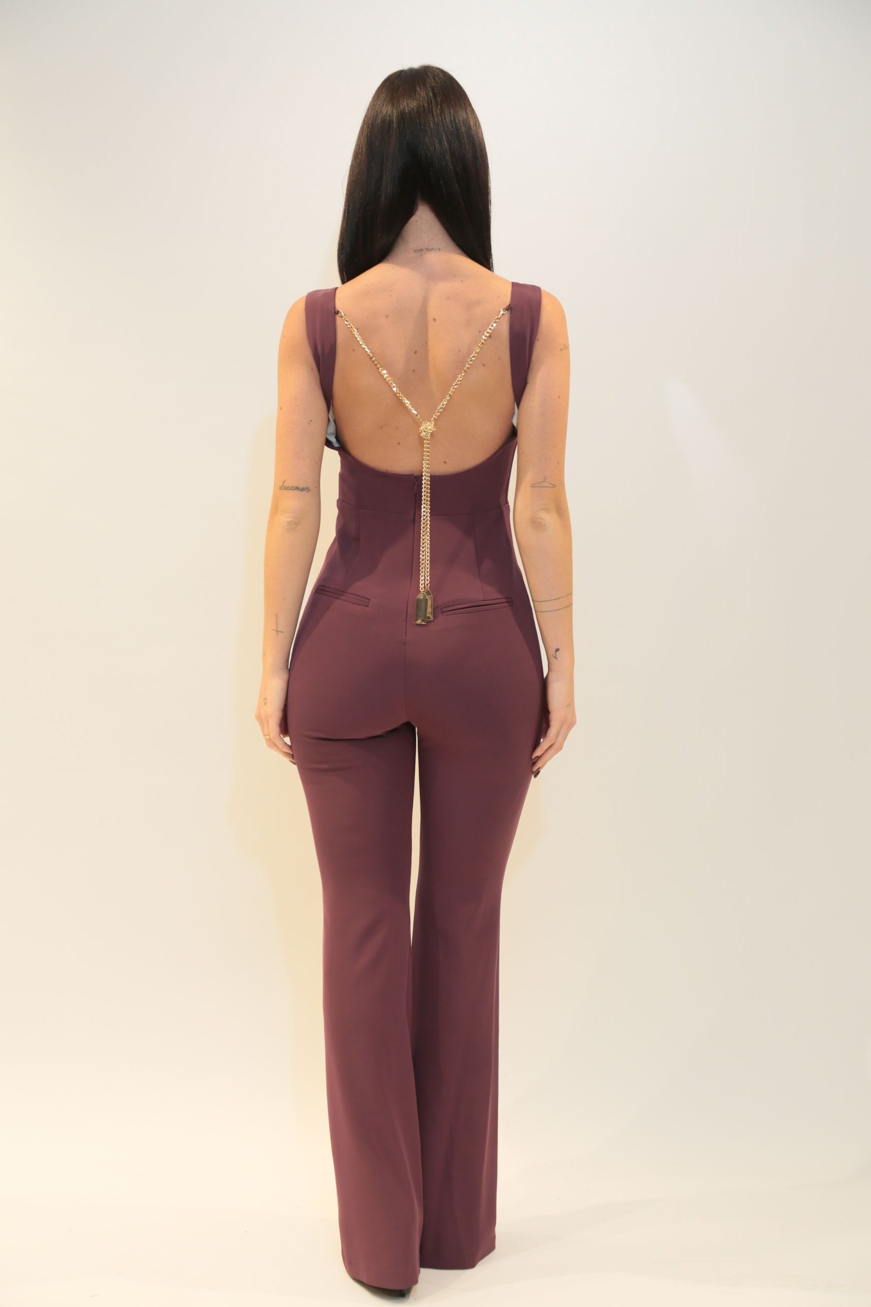 Scopri la tuta Aliqua donna firmata RELISH, un capo elegante della collezione Autunno/Inverno 2025/26. Design raffinato senza maniche con apertura sulla schiena, collana con placca logo e tasche a filetto si unisce a stile sofisticato in questa tuta versatile, perfetta per creare look distintivi e glamour.