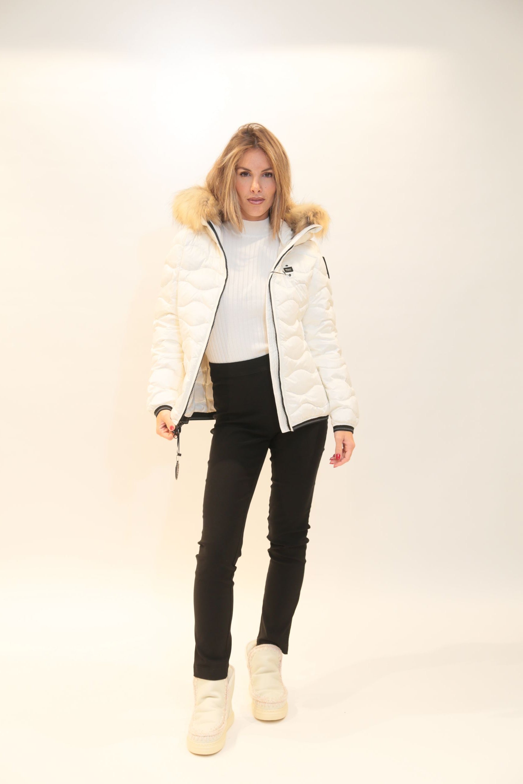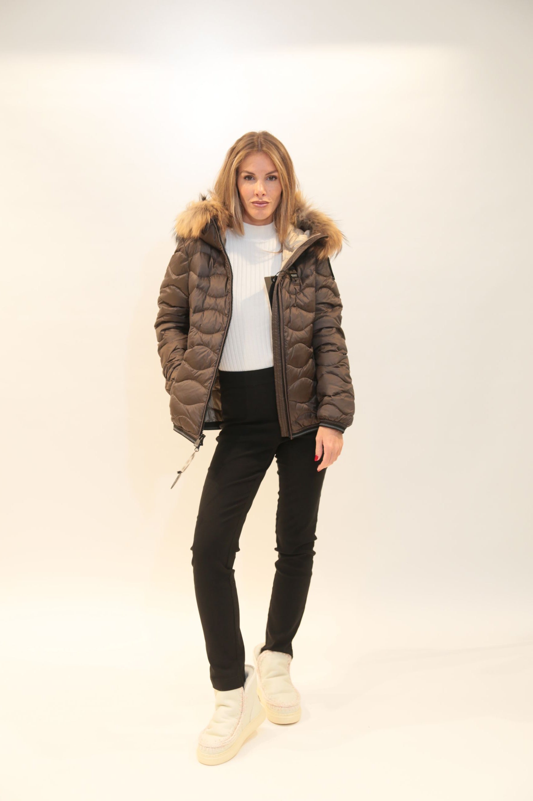 Questo piumino è il capo perfetto per affrontare l'inverno con stile ed eleganza. La tecnologia BLAUER garantisce isolamento termico superiore, mentre il bordo in pelliccia aggiunge un tocco luxury e femminile. Indossalo con jeans e stivaletti per un look urban-chic, oppure abbinalo a pantaloni eleganti per occasioni più formali. Il militare è perfetto per look urban-outdoor, il nero garantisce eleganza versatile, il marrone offre calore autunnale, il bianco dona luminosità sofisticata, mentre il bordeaux aggiunge un tocco di colore elegante. Un investimento di stile della collezione Autunno/Inverno 2025/26 che unisce tecnologia americana e raffinatezza femminile, perfetto per la donna moderna che cerca qualità superiore e stile nel proprio guardaroba.