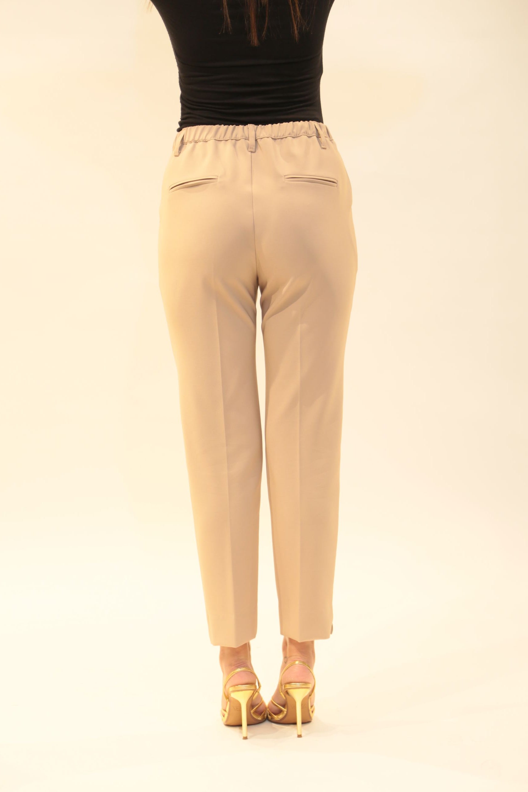 Scopri il pantalone Ostendo donna firmato RELISH, un capo elegante della collezione Autunno/Inverno 2025/26. Design a vita alta con tasche francesi, filetti e spacchetti sul fondo si unisce a vestibilità confortevole in questo pantalone versatile, perfetto per creare look sofisticati e contemporanei.