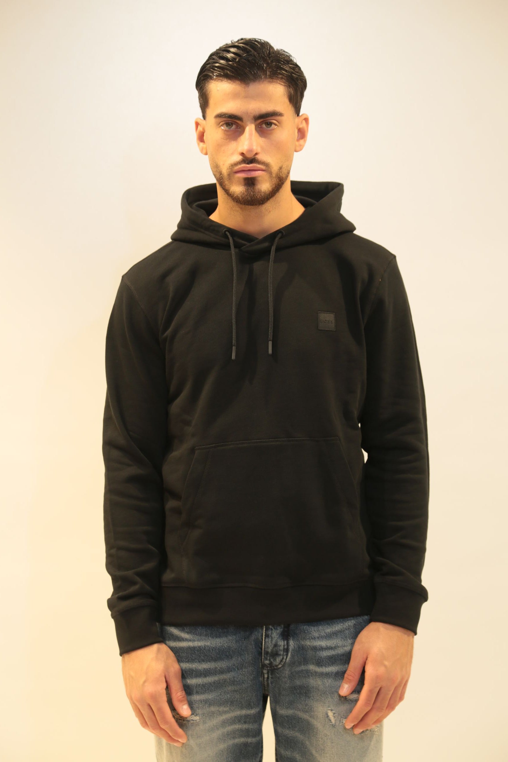 La felpa HUGO BOSS nera è l'essenza dello stile contemporaneo maschile. Questo capo iconico incarna l'eleganza casual e la qualità premium del brand tedesco HUGO BOSS, perfetto per l'uomo moderno che cerca comfort senza rinunciare allo stile.